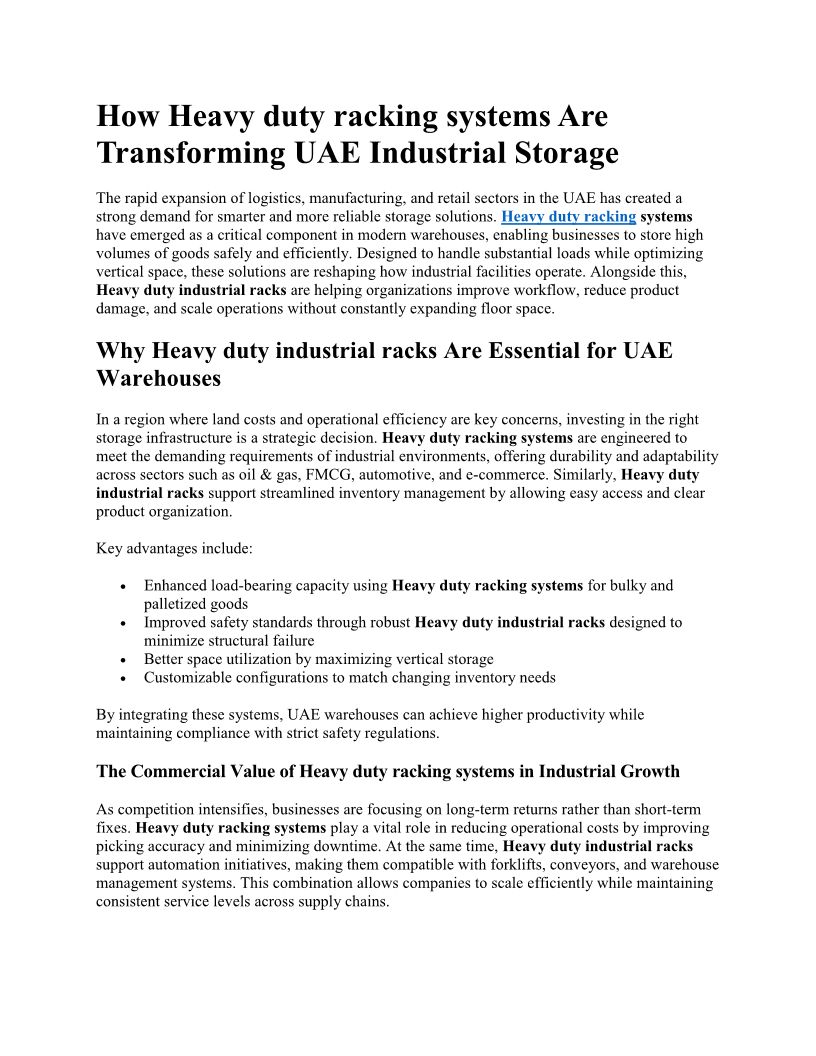 How Heavy duty racking systems Are Transforming UAE Industrial Storage