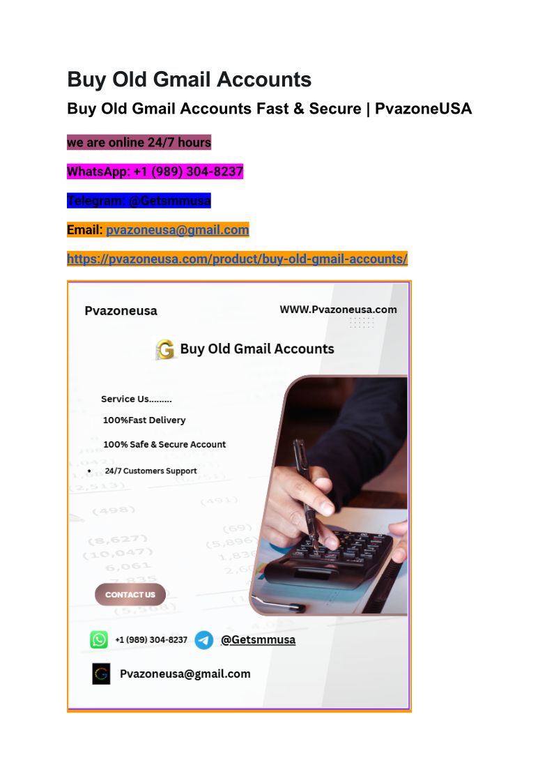 Buy Old Gmail Accounts - Trusted Service at Pvazoneusa