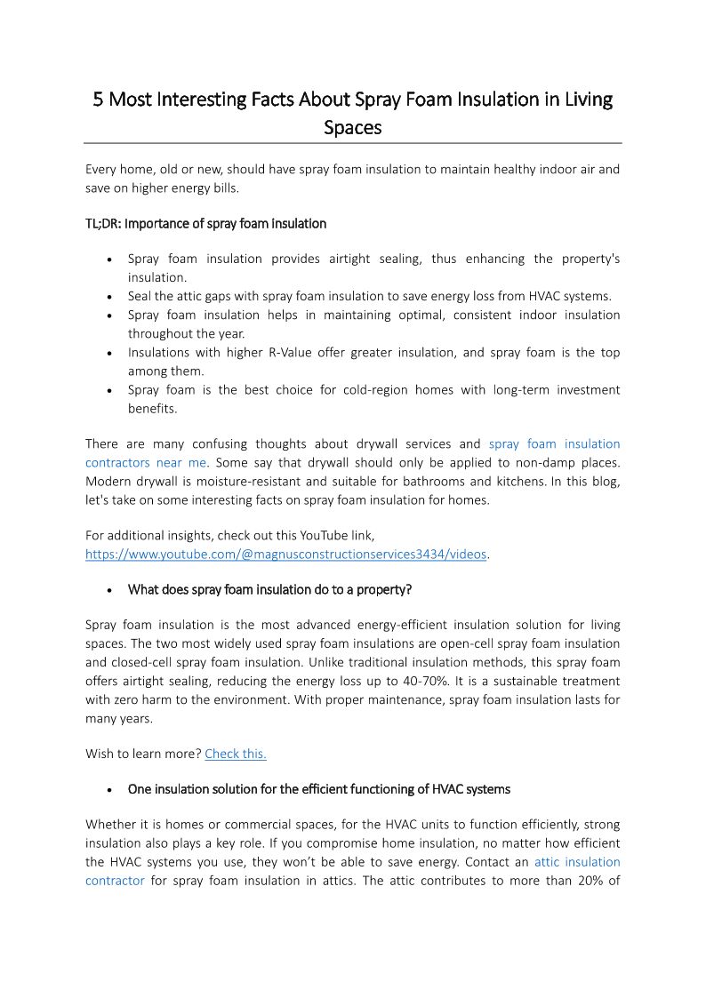 5 Most Interesting Facts About Spray Foam Insulation in Living Spaces