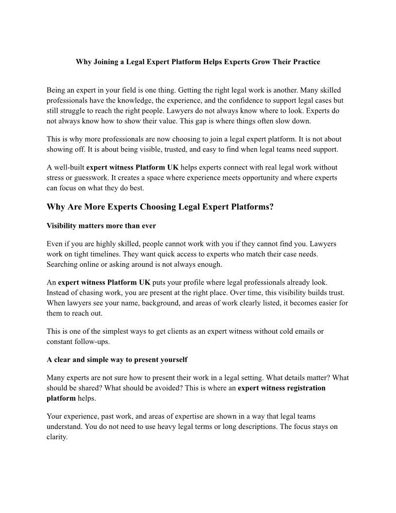 Why Joining a Legal Expert Platform Helps Experts Grow Their Practice