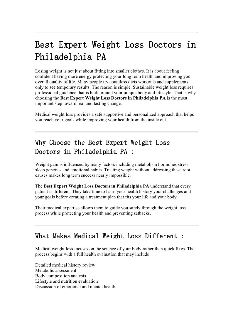 Best Expert Weight Loss Doctors in Philadelphia PA