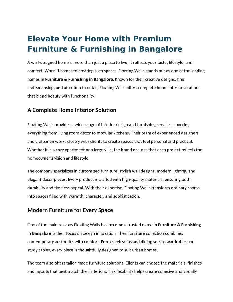 Elevate Your Home with Premium Furniture & Furnishing in Bangalore