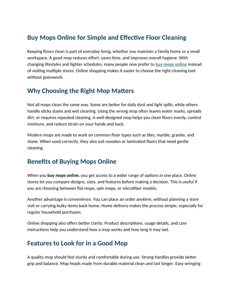 Buy Mops Online for Simple and Effective Floor Cleaning