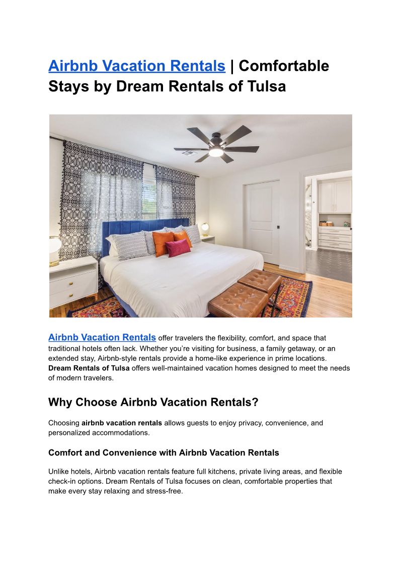Airbnb Vacation Rentals _ Comfortable Stays by Dream Rentals of Tulsa