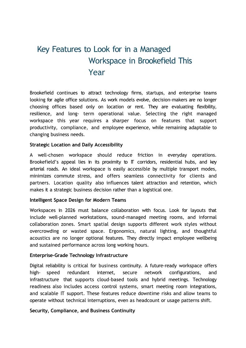 Key Features to Look for in a Managed Workspace in Brookefield This Year