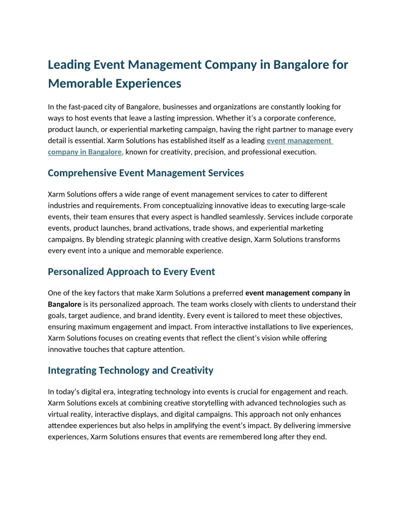 Leading Event Management Company in Bangalore for Memorable Experiences