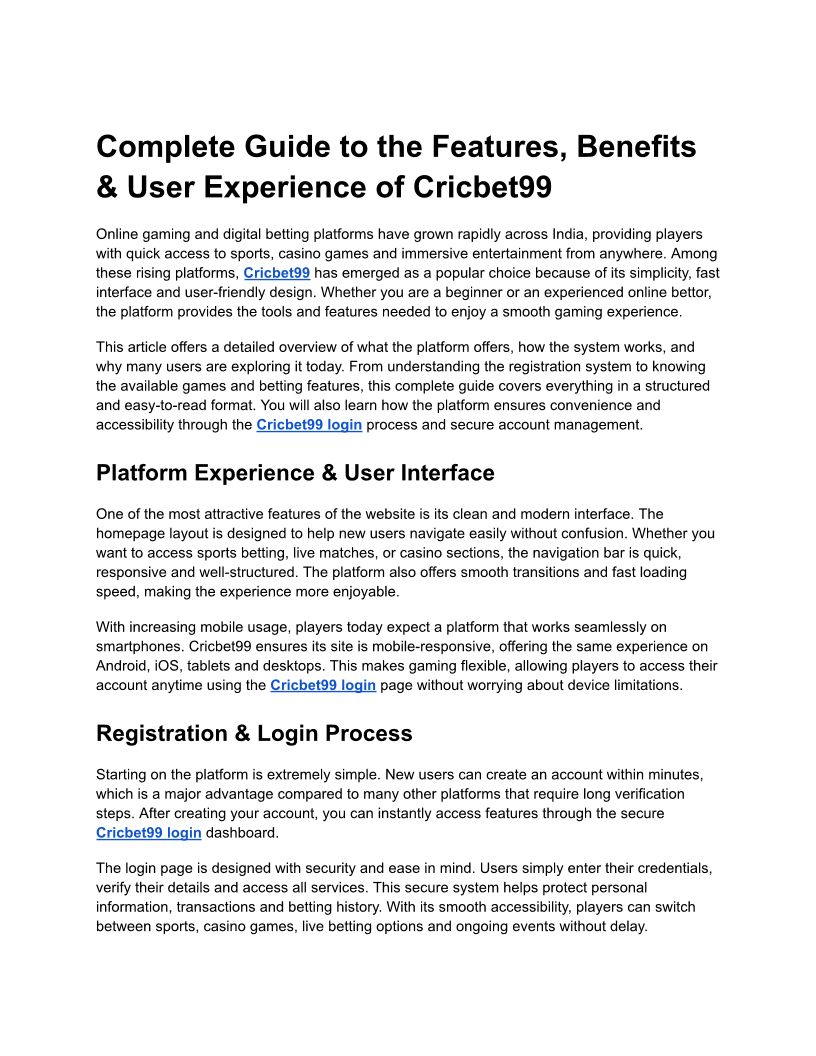 Complete Guide to the Features, Benefits & User Experience of Cricbet99
