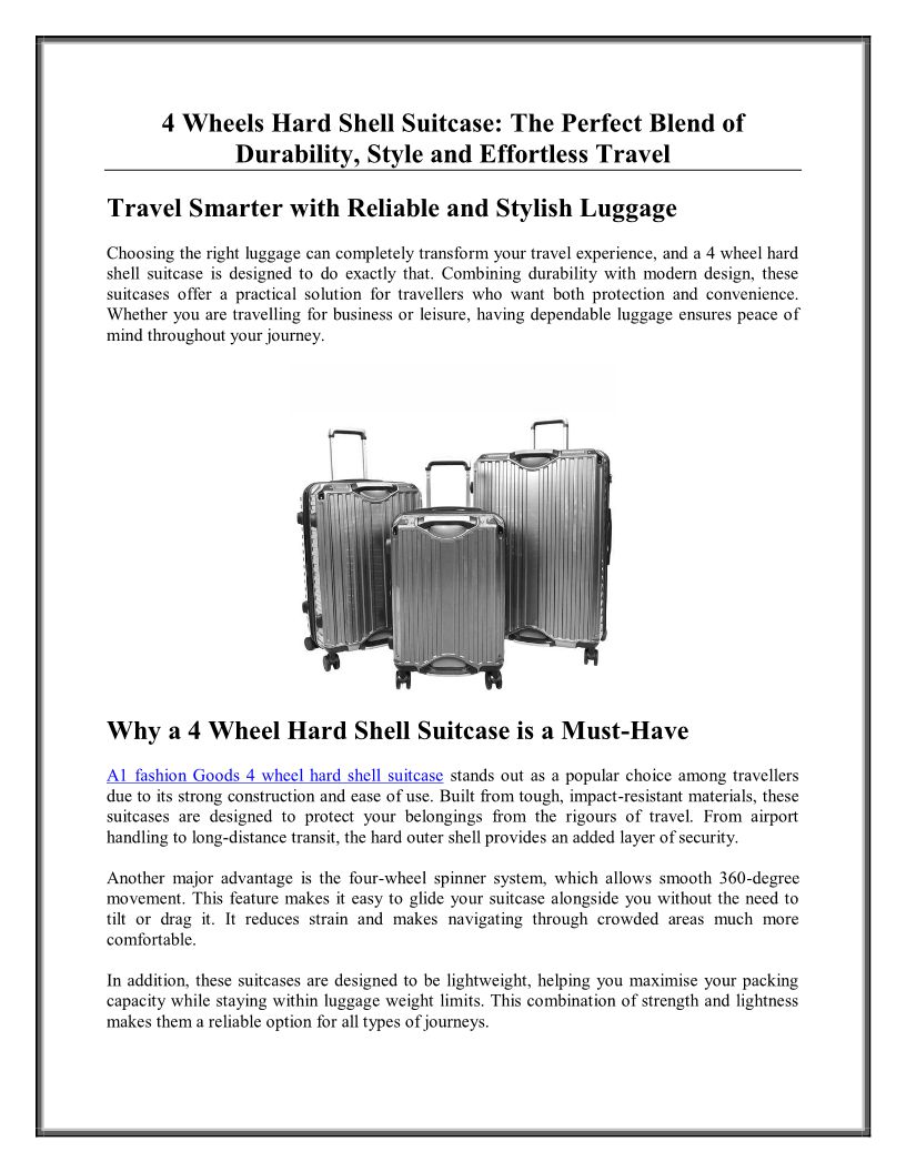 4 Wheel Hard Shell Suitcase: The Perfect Blend of Durability, Style and Effortless Travel