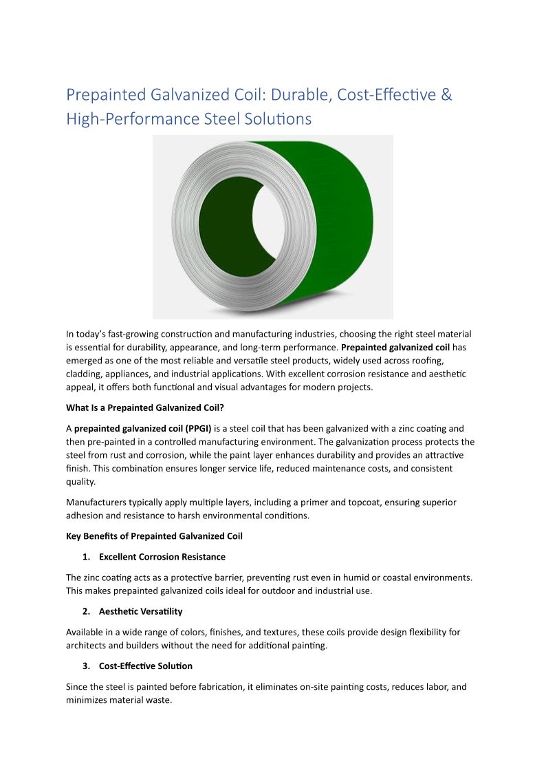 Prepainted Galvanized Coil: Durable, Cost-Effective & High-Performance Steel Solutions