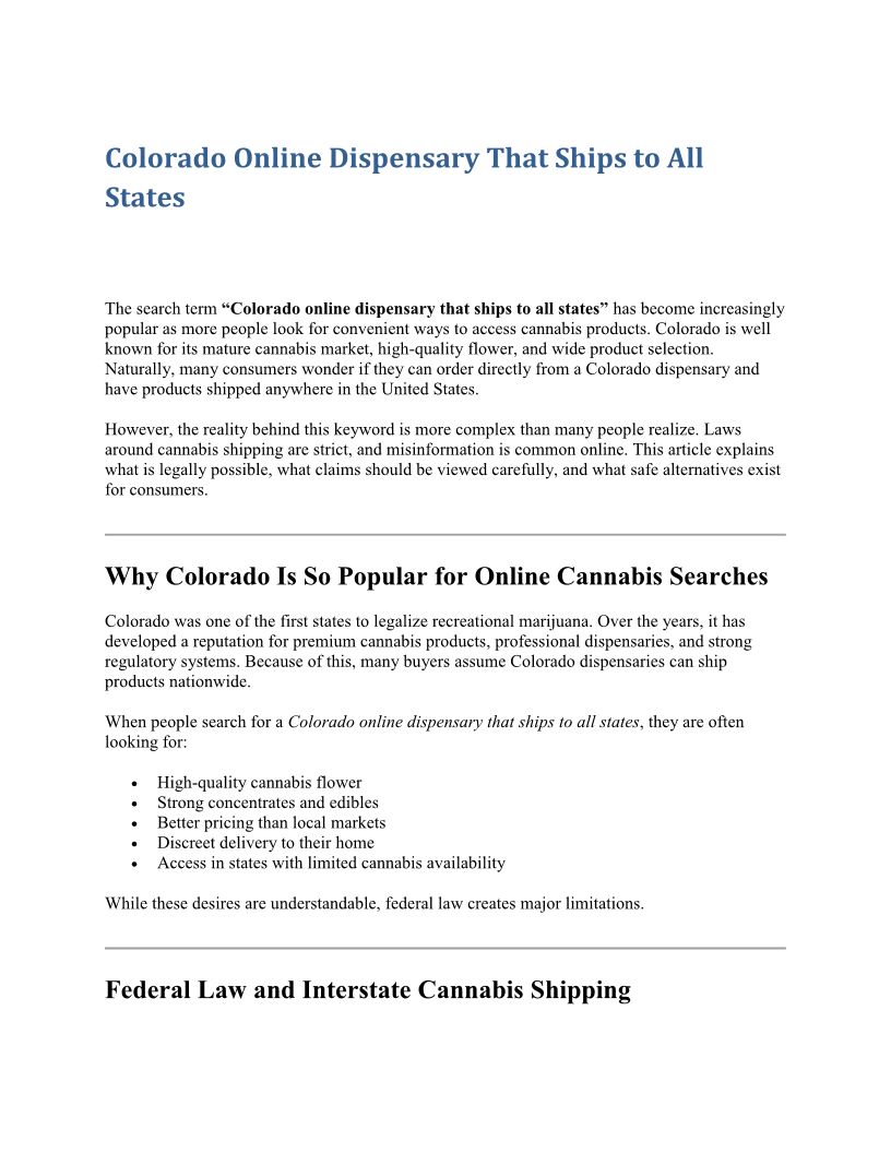 Colorado online dispensary that ships to all states