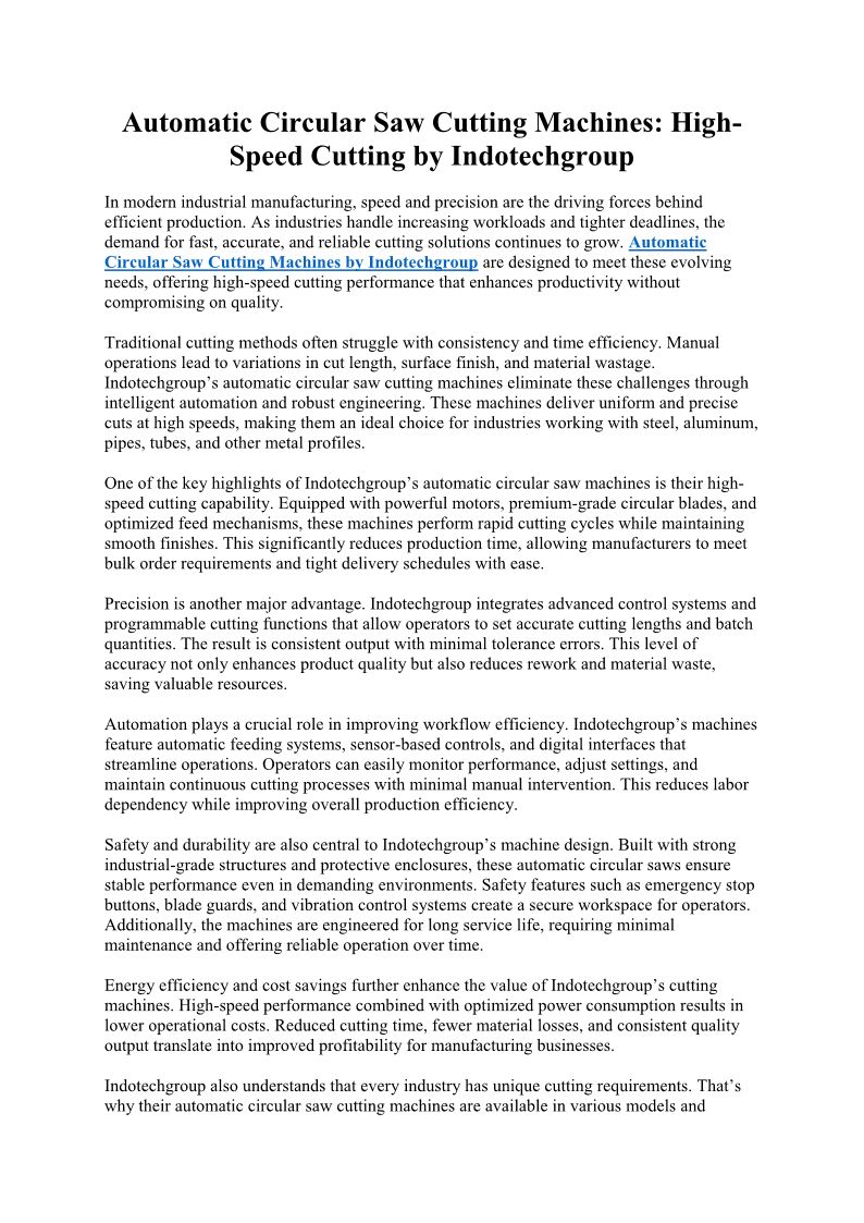 Automatic Circular Saw Cutting Machines High-Speed Cutting by Indotechgroup
