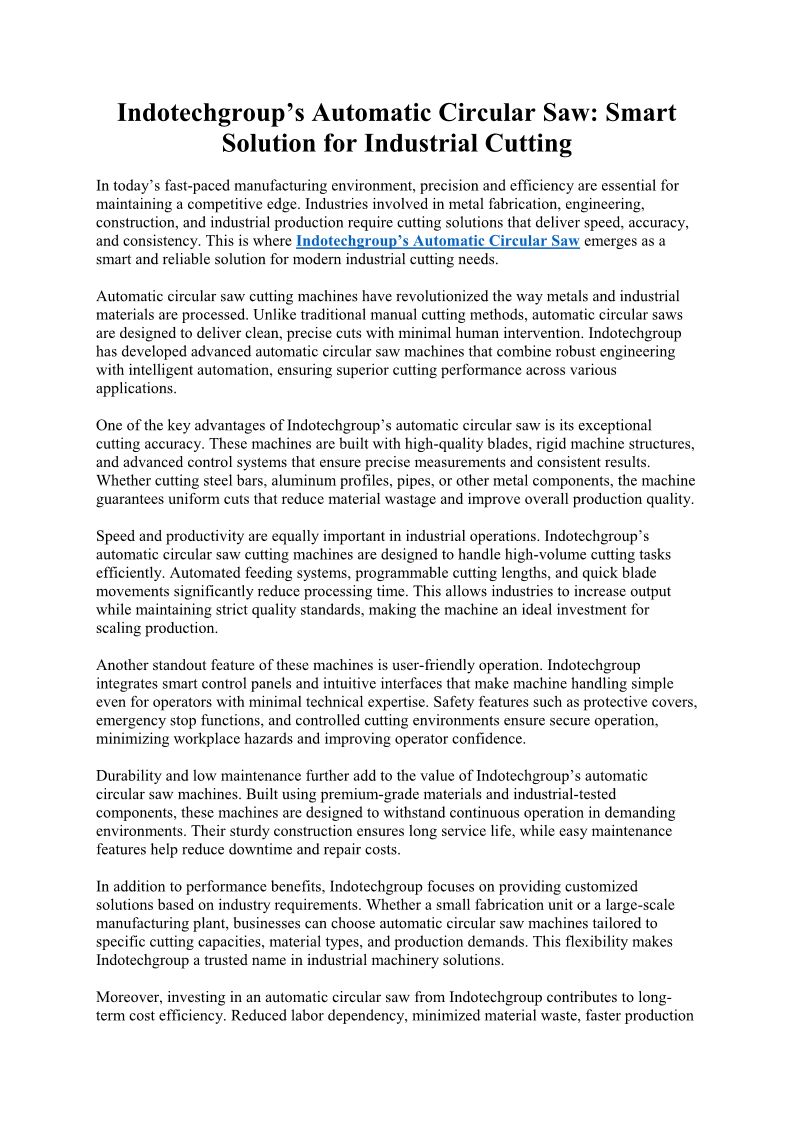 Indotechgroup’s Automatic Circular Saw Smart Solution for Industrial Cutting