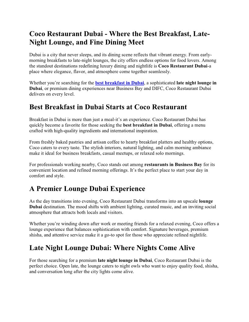 Coco Restaurant Dubai - Where the Best Breakfast, Late-Night Lounge, and Fine Dining Meet