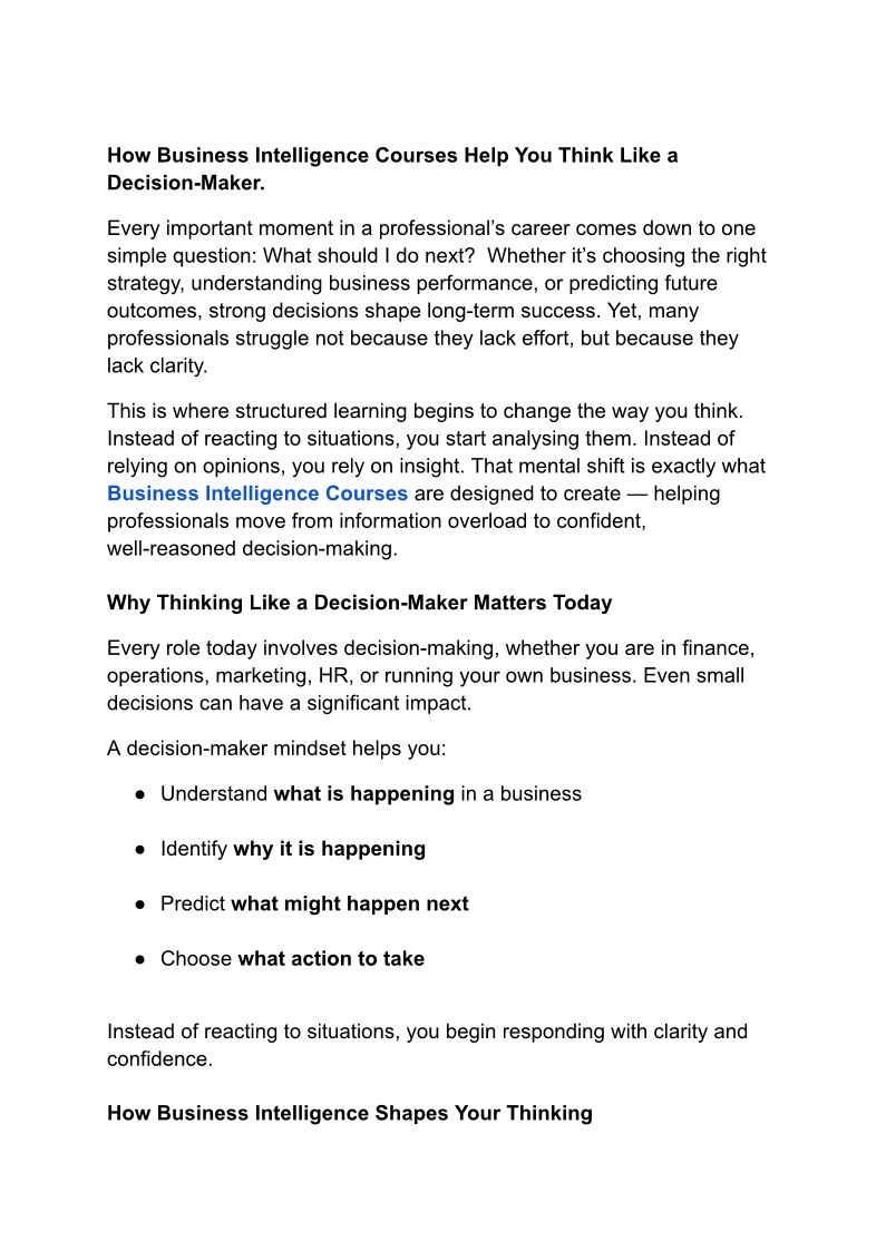 How Business Intelligence Courses Help You Think Like a Decision-Maker.