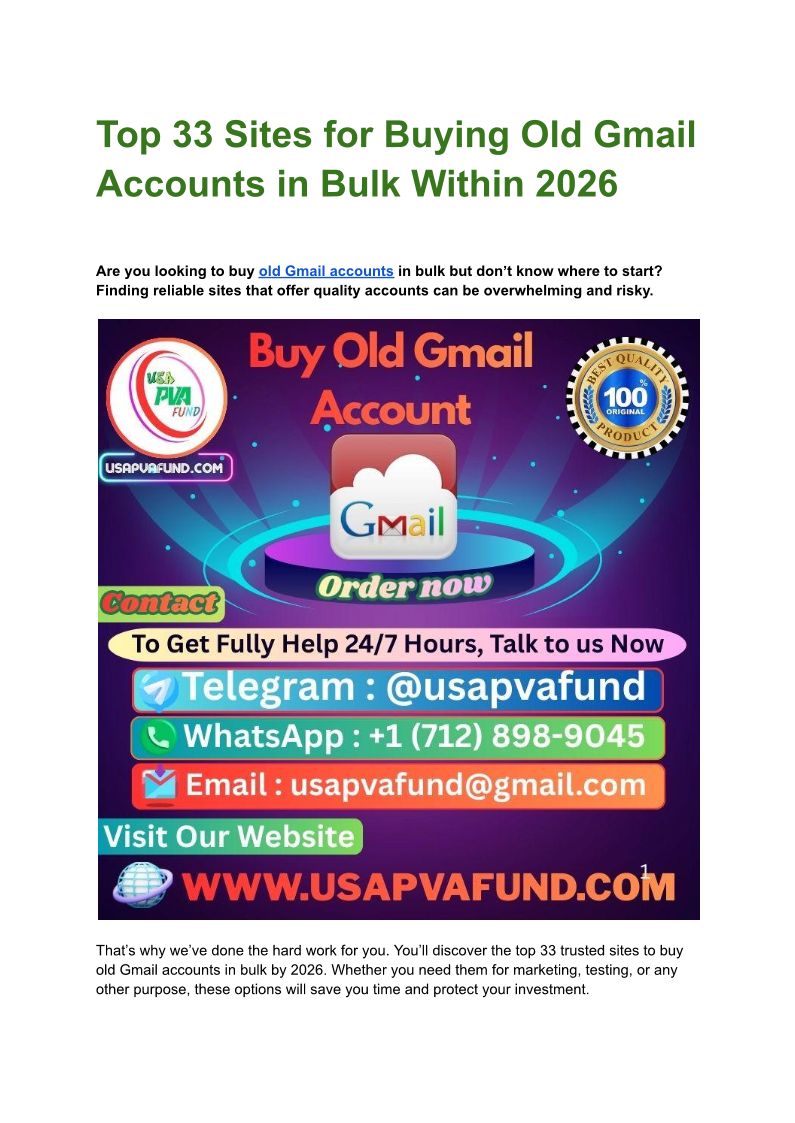Top 33 Sites for Buying Old Gmail Accounts in Bulk Within 2026