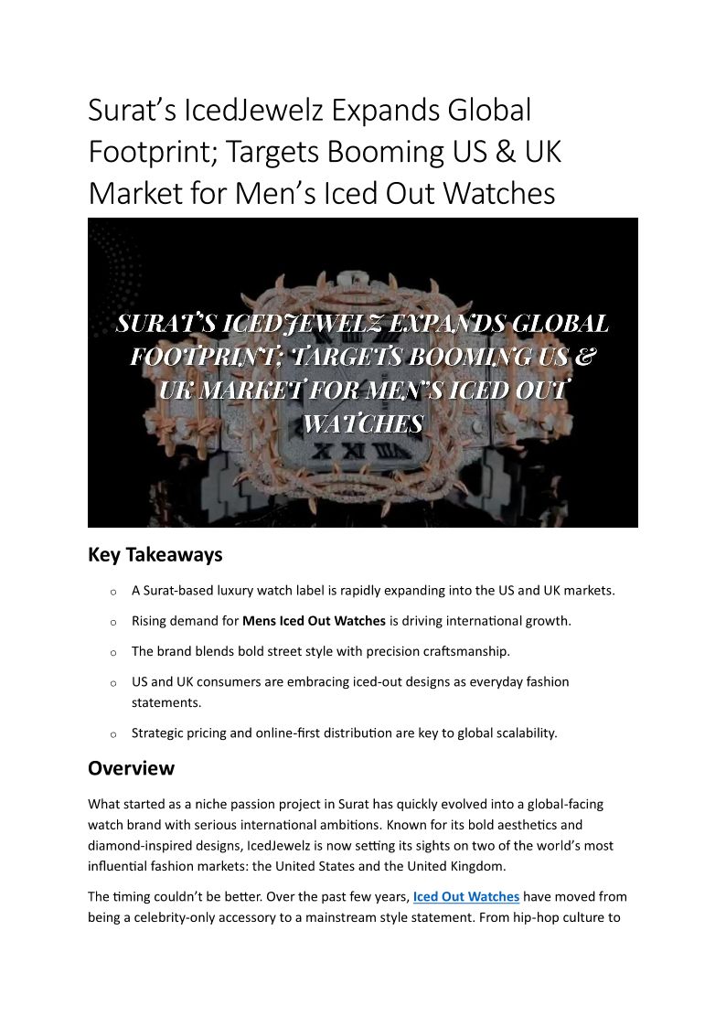 Surat’s IcedJewelz Expands Global Footprint; Targets Booming US & UK Market for Men’s Iced Out Watches