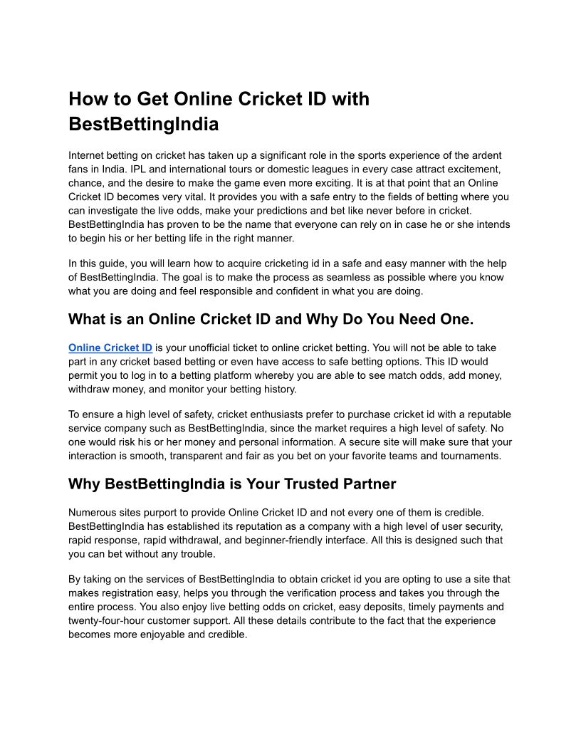 How to Get Online Cricket ID with BestBettingIndia