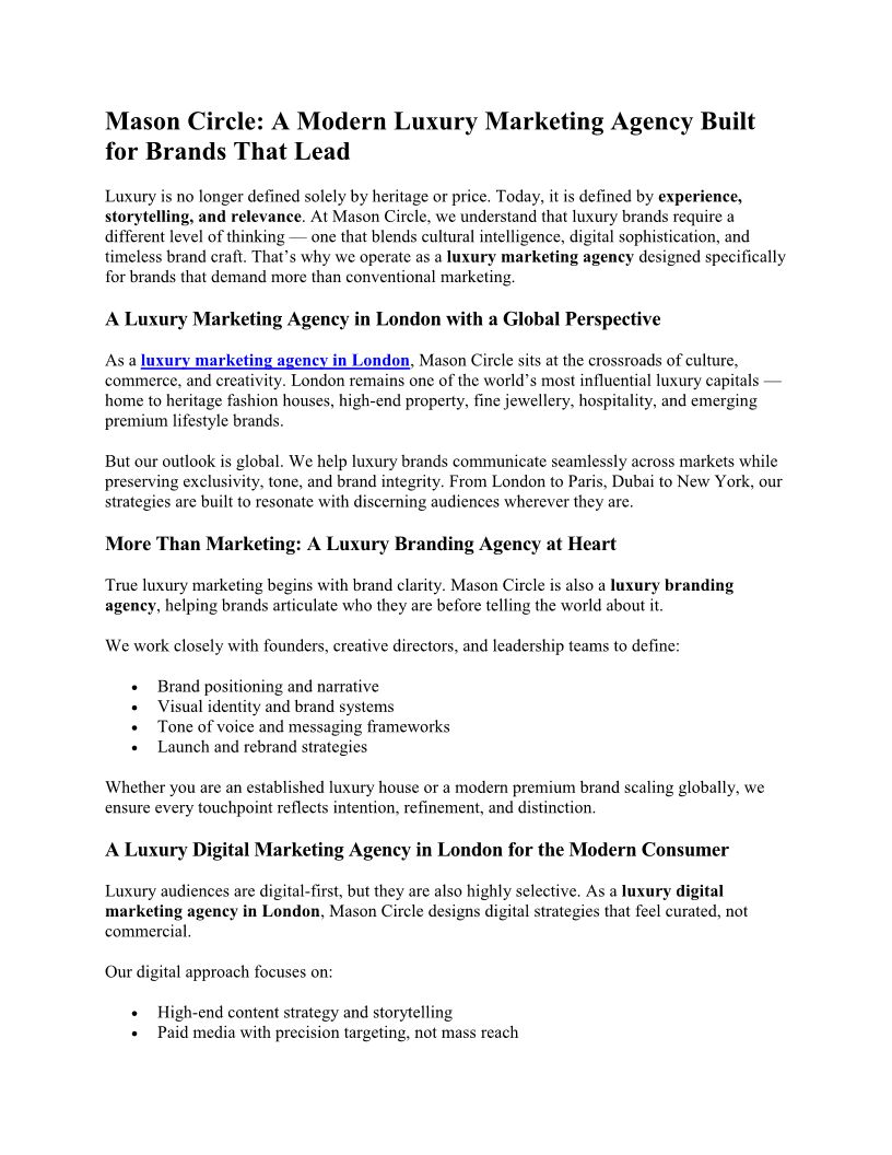 Mason Circle: A Modern Luxury Marketing Agency Built for Brands That Lead