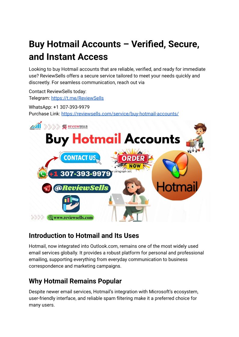 Buy Hotmail Accounts – Verified & Reliable Service 2025