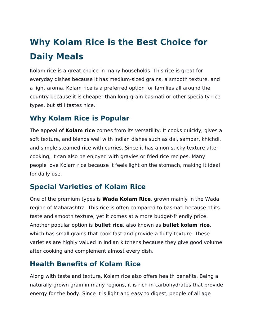 Why Kolam Rice is the Best Choice for Daily Meals