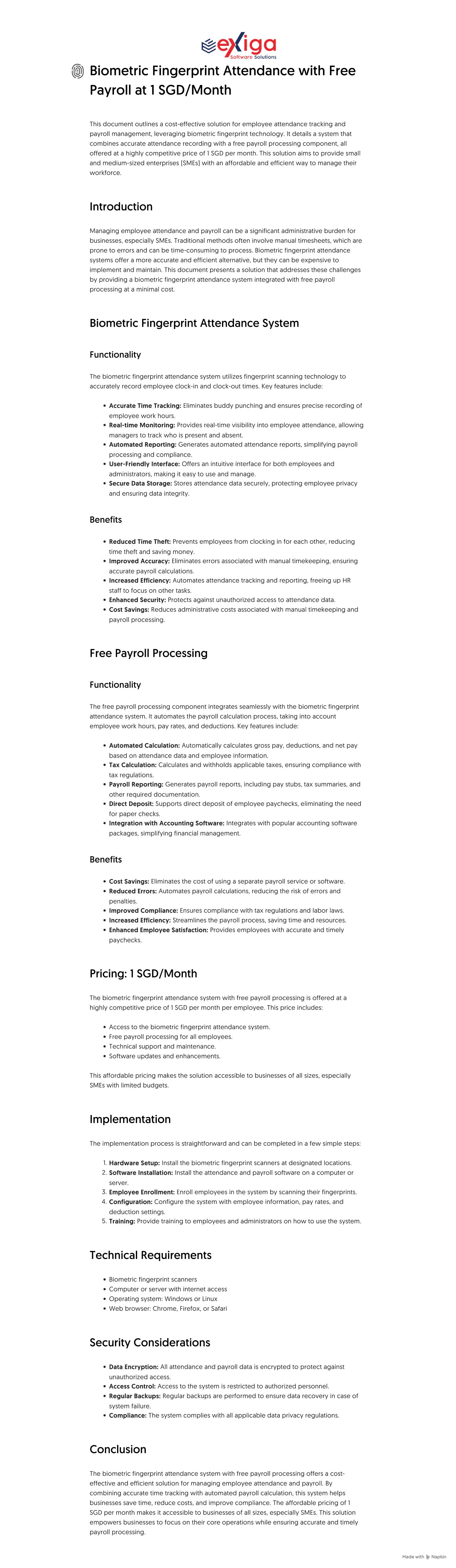 Biometric Fingerprint Attendance with Free Payroll at 1 SGD_Month