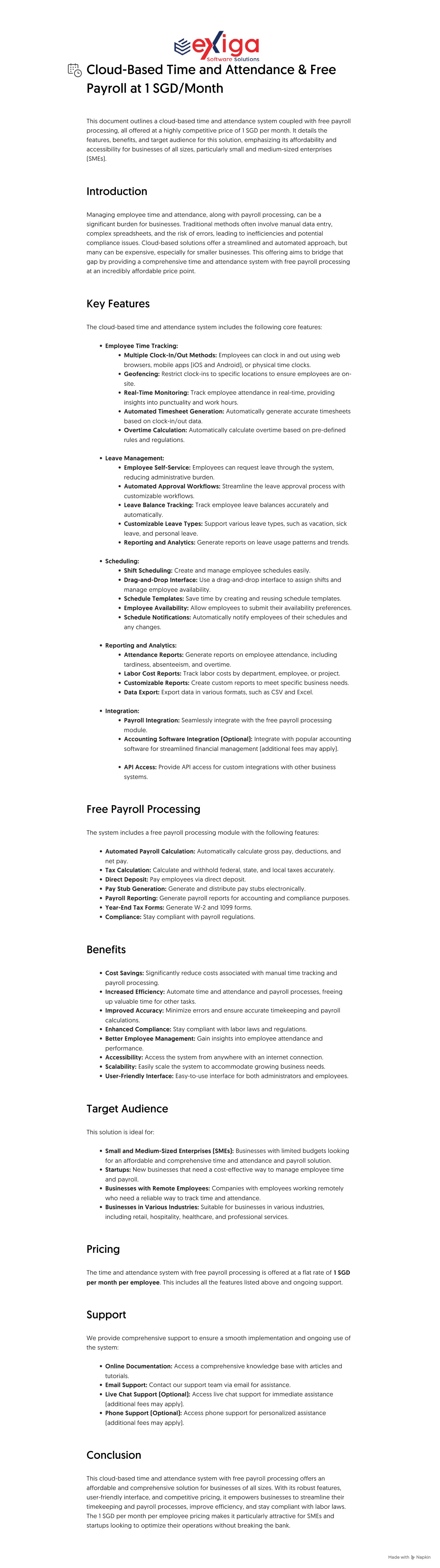 Cloud-Based Time and Attendance & Free Payroll at 1 SGD_Month