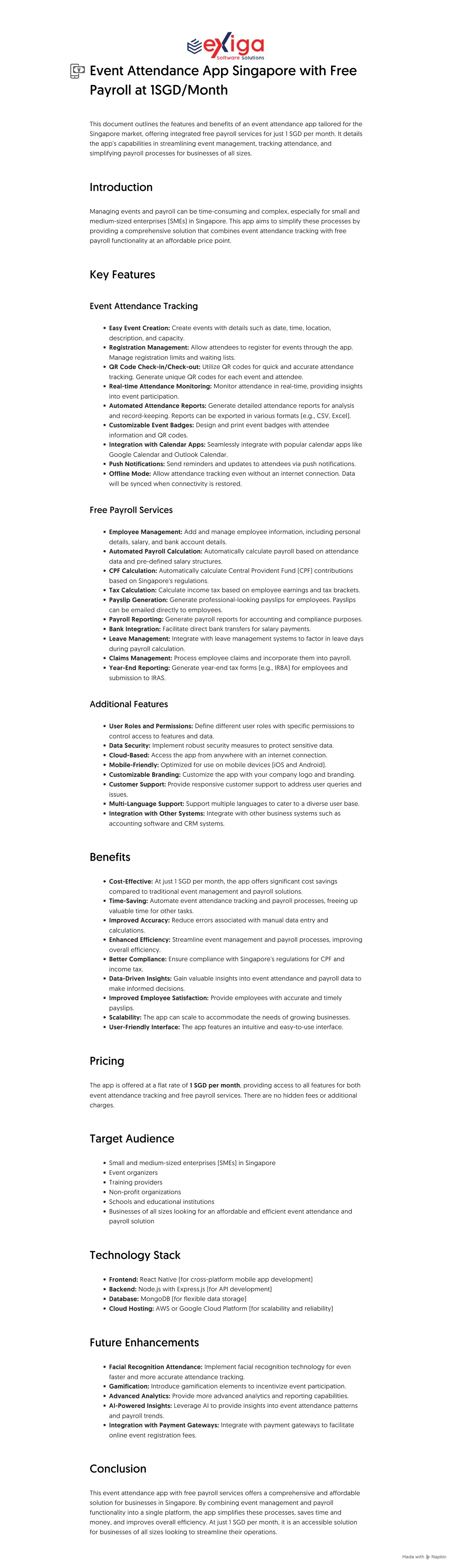 Event Attendance App Singapore with Free Payroll at 1SGD_Month