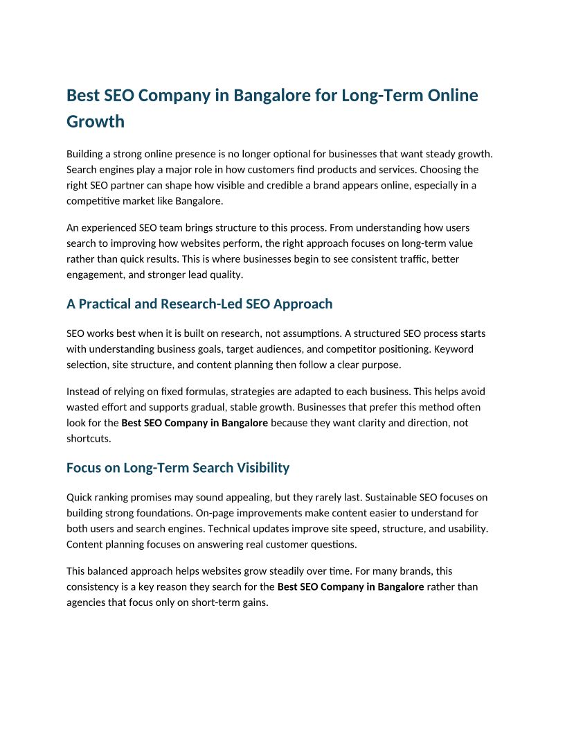 Best SEO Company in Bangalore for Long-Term Online Growth