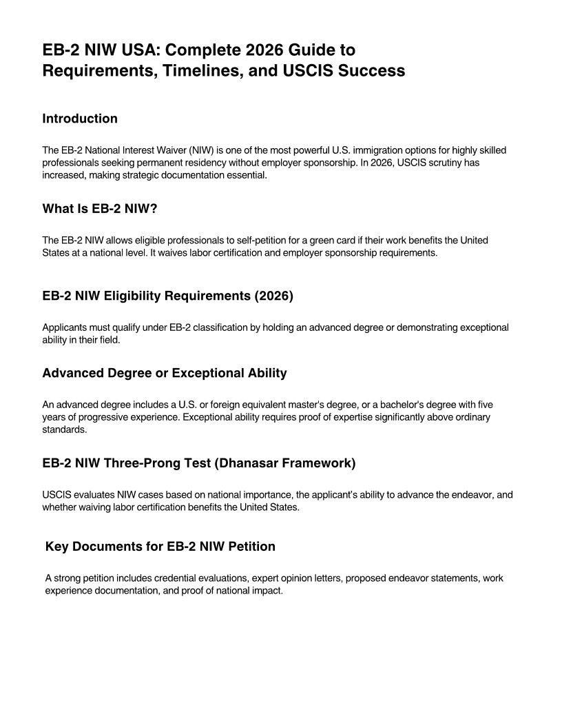 EB-2 NIW Green Card Without Employer: 2026 Requirements & Success Framework