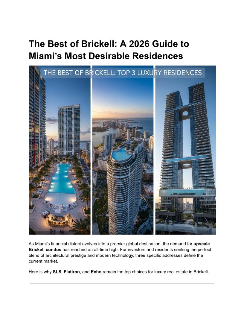The Best of Brickell: A 2026 Guide to Miami’s Most Desirable Residences
