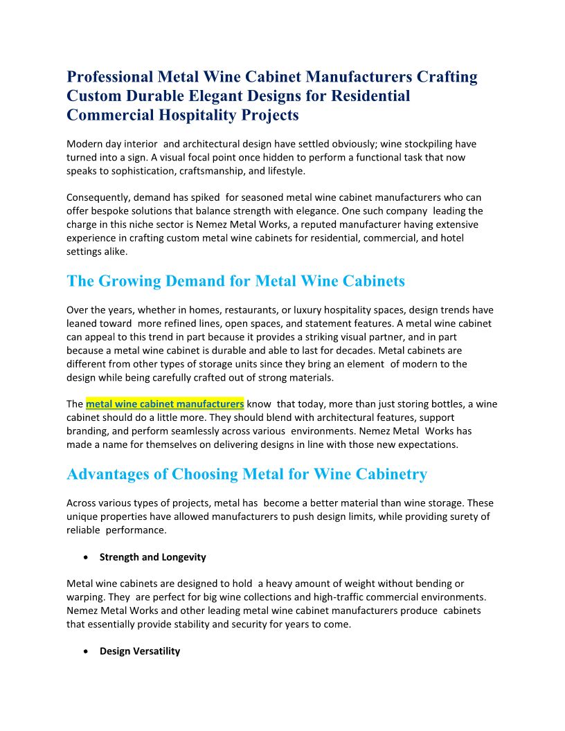 Professional Metal Wine Cabinet Manufacturers Crafting Custom Durable Elegant Designs for Residential Commercial Hospitality Projects
