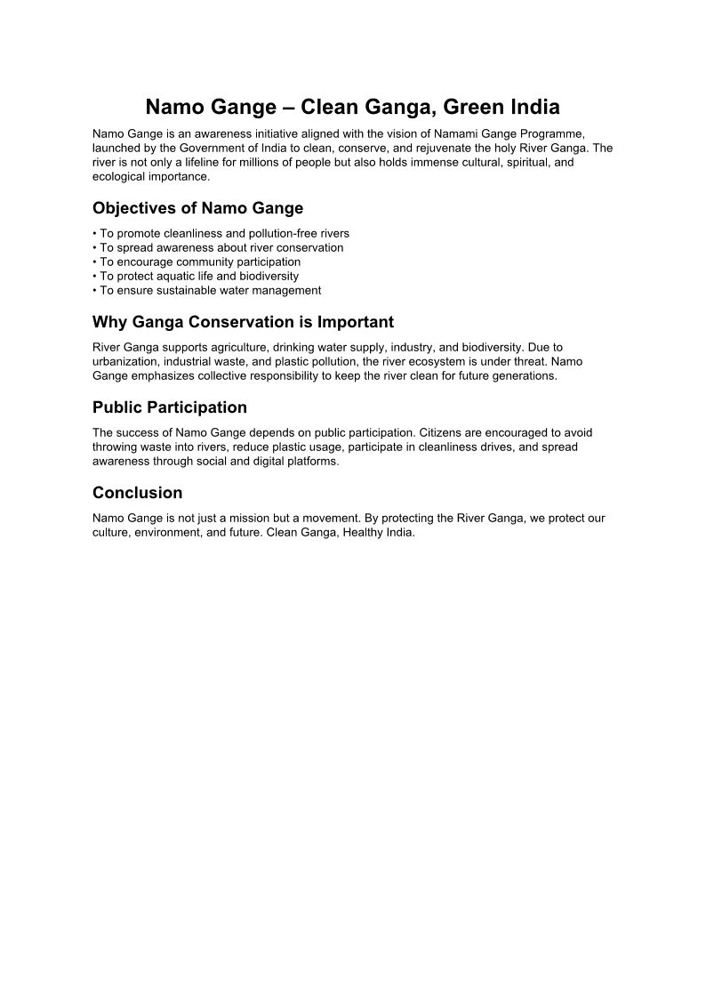 Namo Gange Trust is working for cleaning of one of the largest river of India known as Ganga.