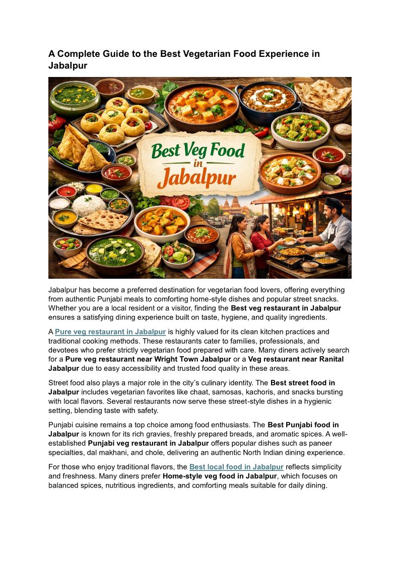 A Complete Guide to the Best Vegetarian Food Experience in Jabalpur