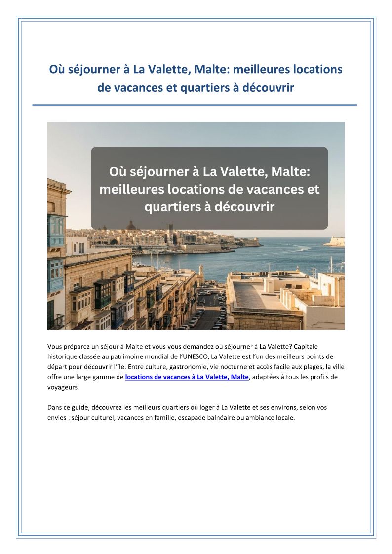 Où séjourner à La Valette, Malte meilleures locations de vacances et quartiers à découvrir
