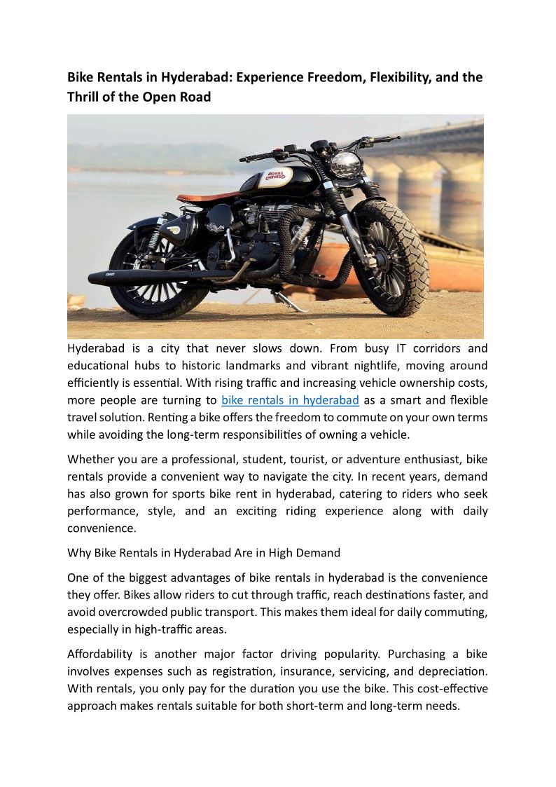 Bike Rentals in Hyderabad: Experience Freedom, Flexibility, and the Thrill of the Open Road