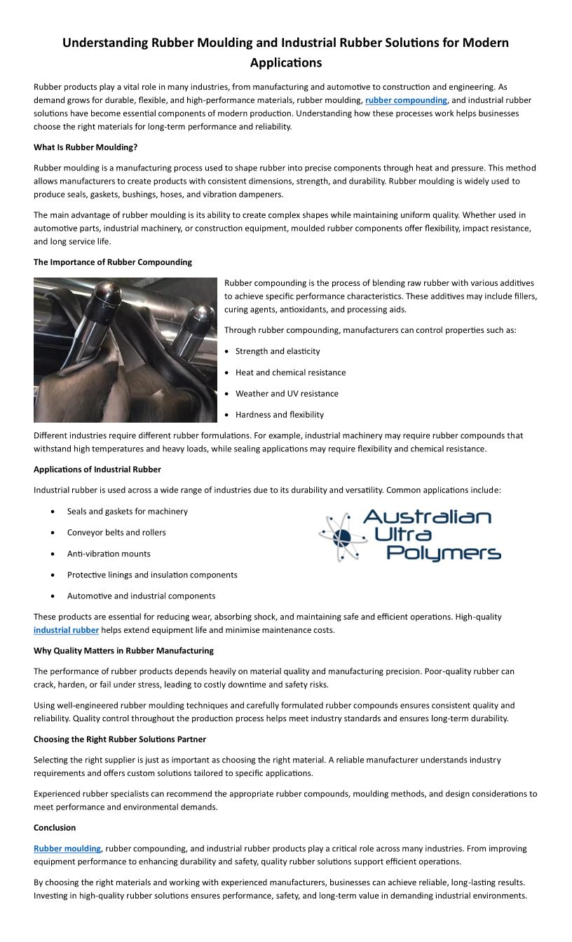 Understanding Rubber Moulding and Industrial Rubber Solutions for Modern Applications