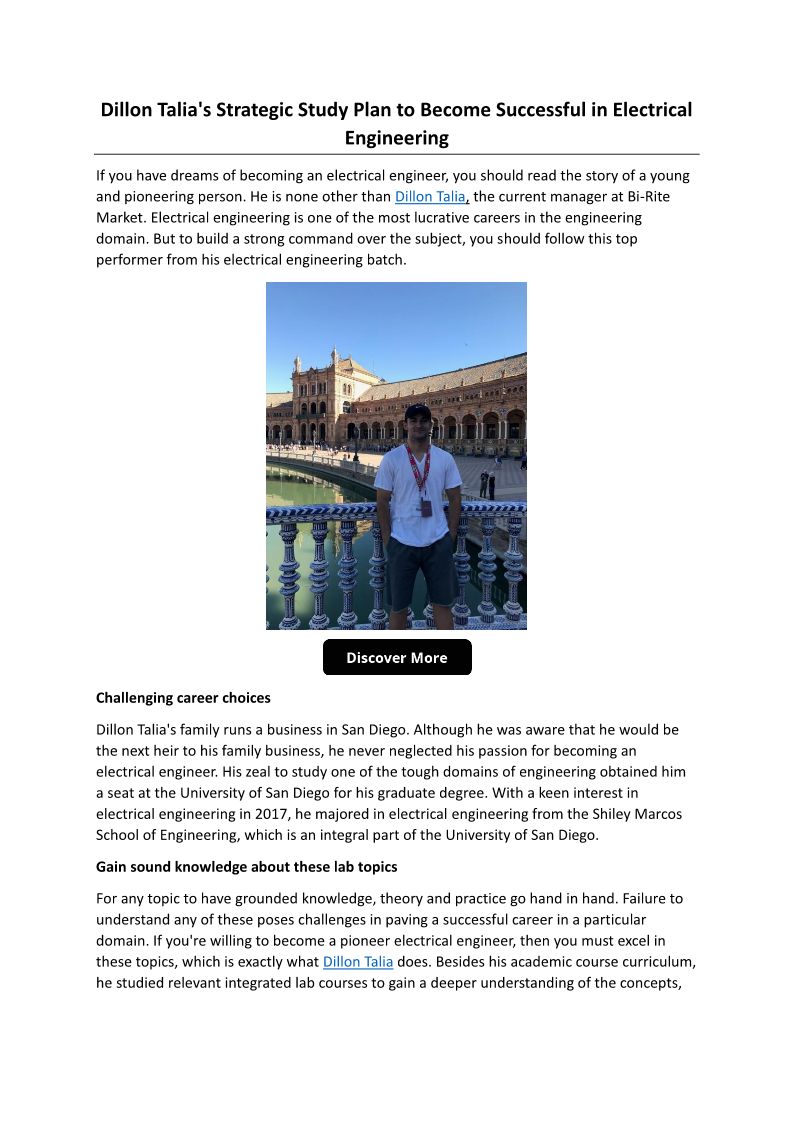 Dillon Talia's Strategic Study Plan to Become Successful in Electrical Engineering