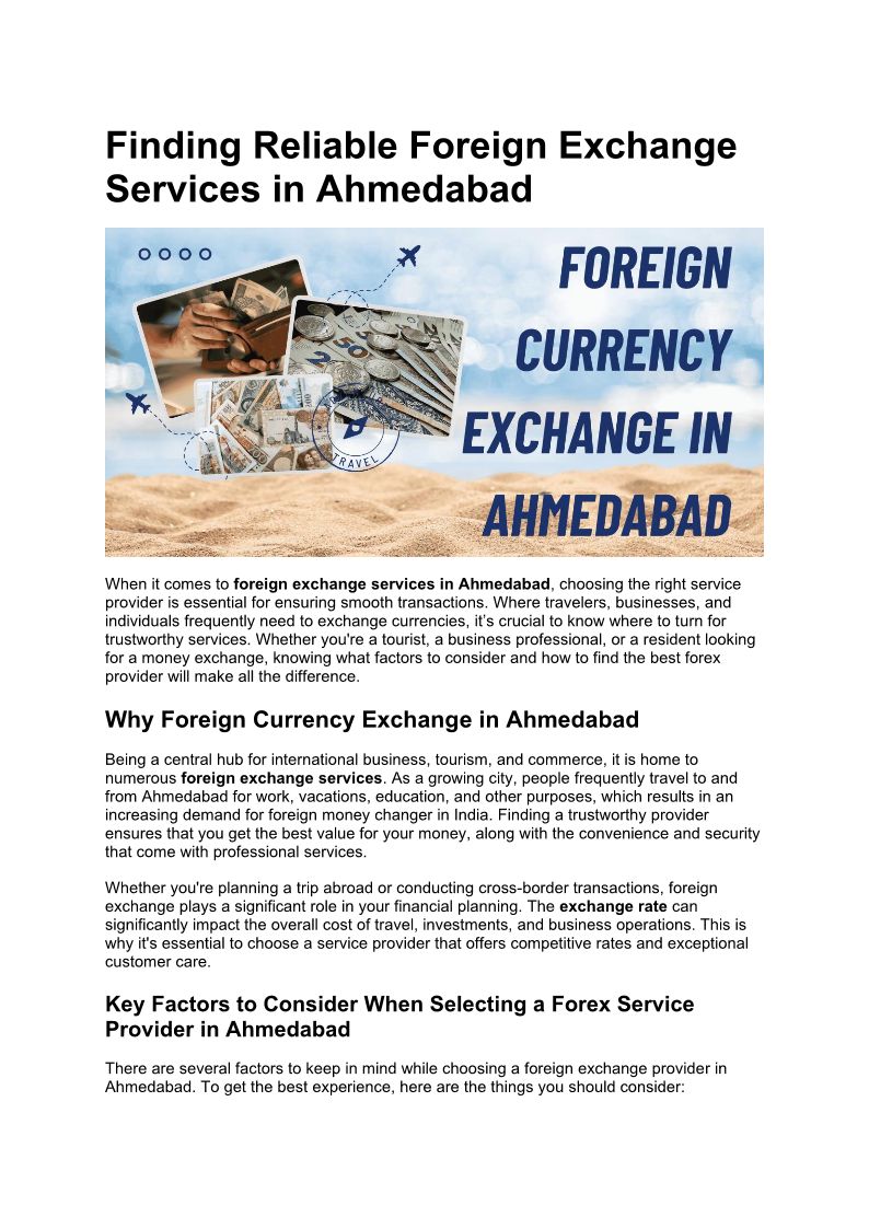 Finding Reliable Foreign Exchange Services in Ahmedabad-Relimoney