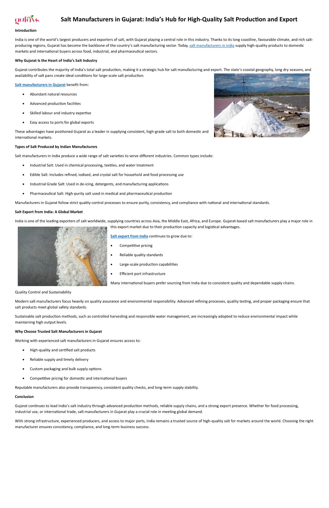 Salt Manufacturers in Gujarat India’s Hub for High-Quality Salt Production and Export