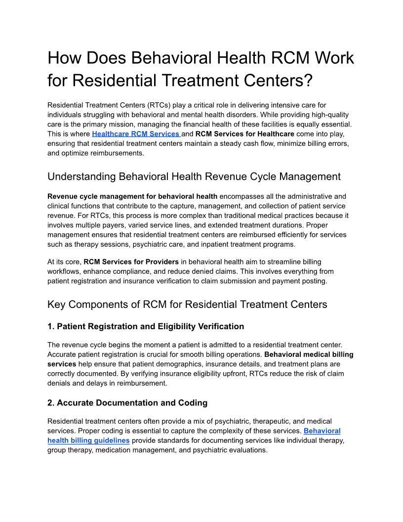 How Does Behavioral Health RCM Work for Residential Treatment Centers