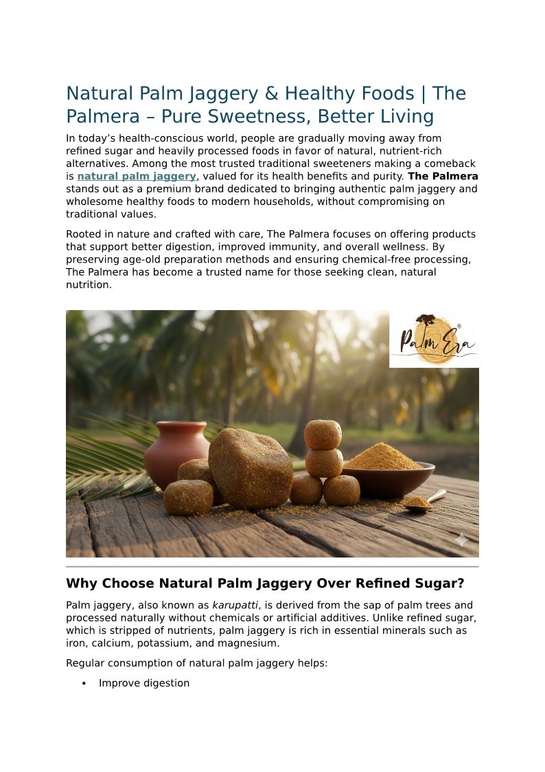 Natural Palm Jaggery & Healthy Foods | The Palmera – Pure Sweetness, Better Living