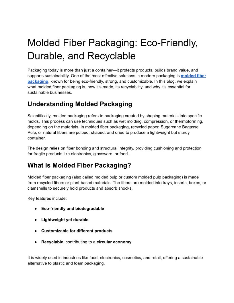 Molded Fiber Packaging_ Eco-Friendly, Durable, and Recyclable