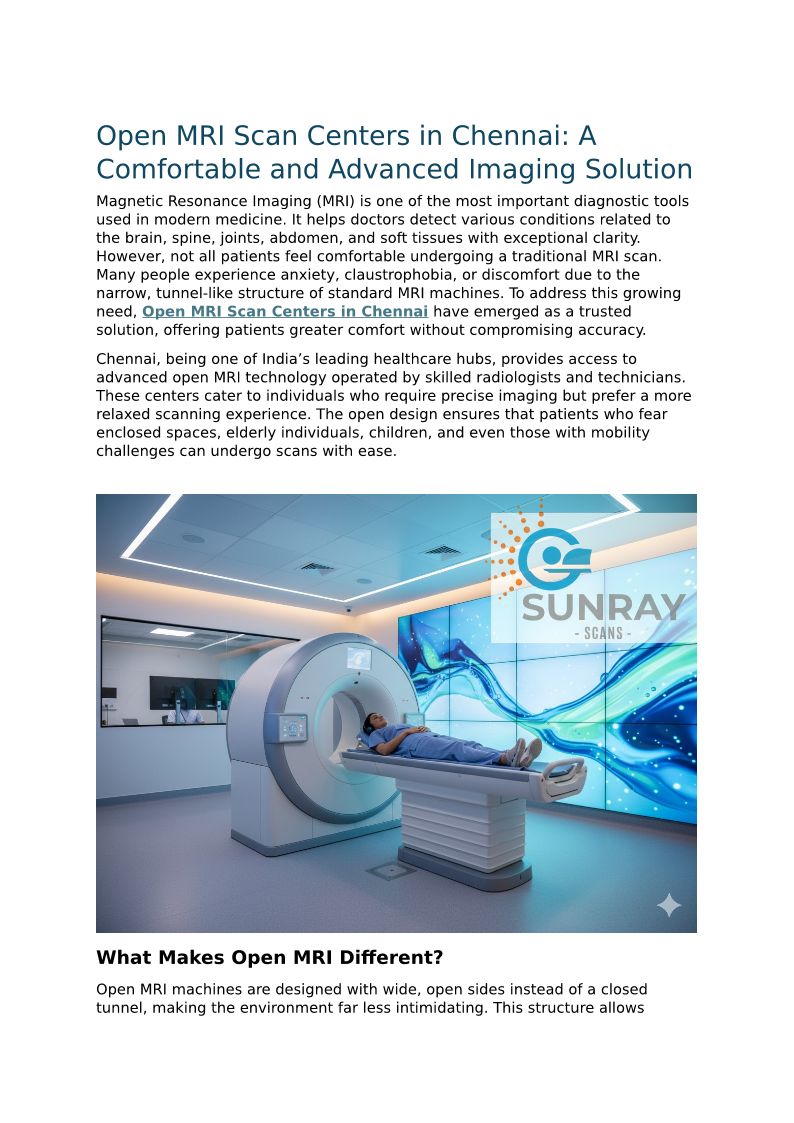 Open MRI Scan Centers in Chennai: A Comfortable and Advanced Imaging Solution