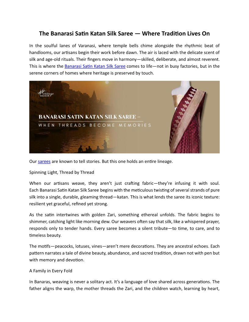 The Banarasi Satin Katan Silk Saree — Where Tradition Lives On