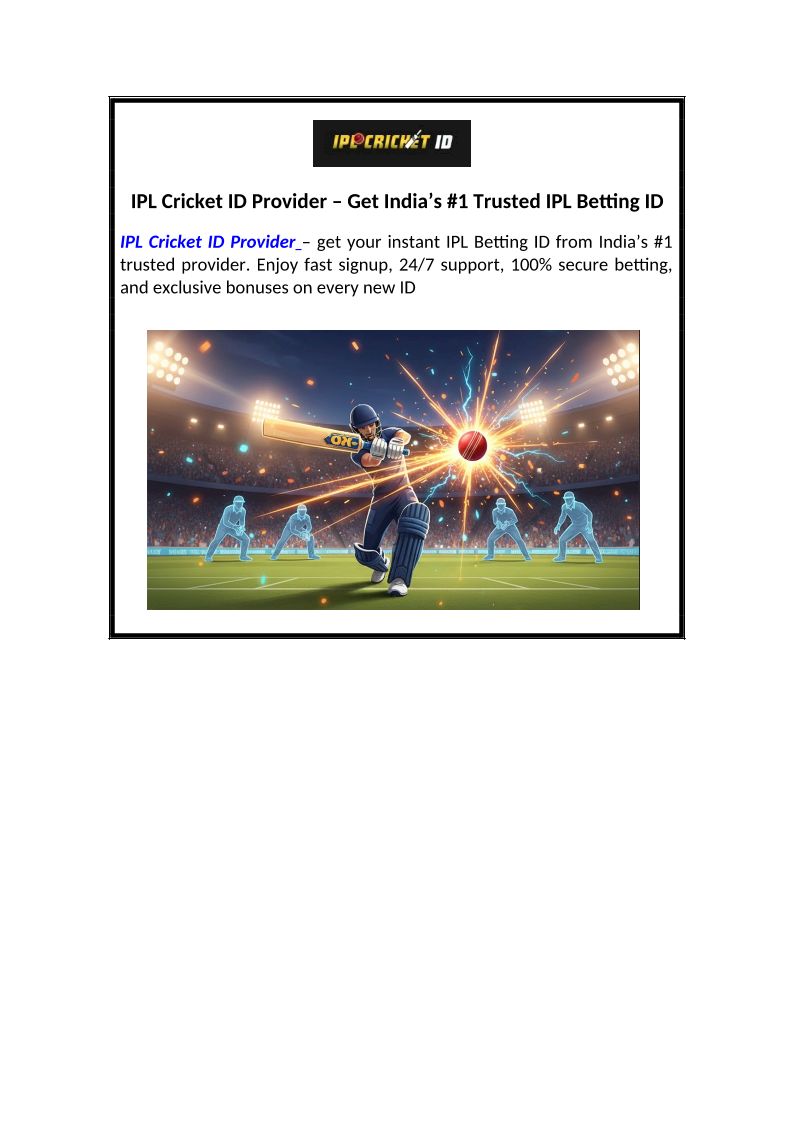 IPL Cricket ID Provider Get India’s #1 Trusted IPL Betting ID