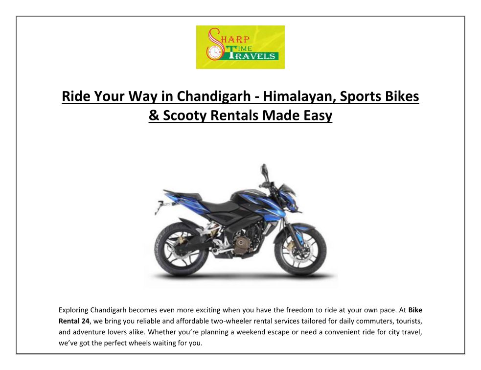 Ride Your Way in Chandigarh - Himalayan, Sports Bikes & Scooty Rentals Made Easy