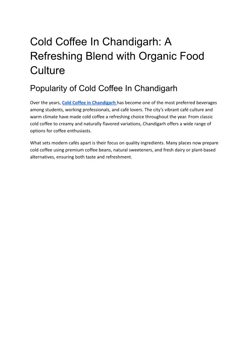 Cold Coffee In Chandigarh_ A Refreshing Blend with Organic Food Culture