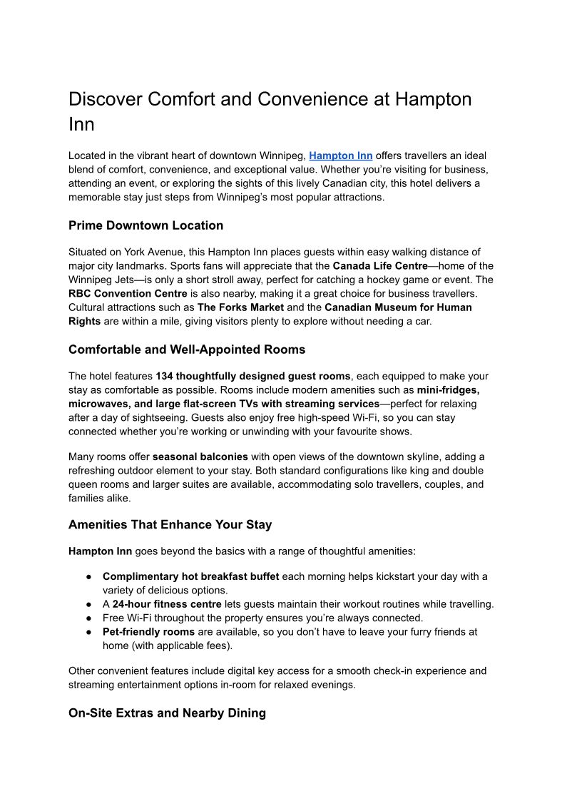 Discover Comfort and Convenience at Hampton Inn by Hilton Winnipeg Downtown