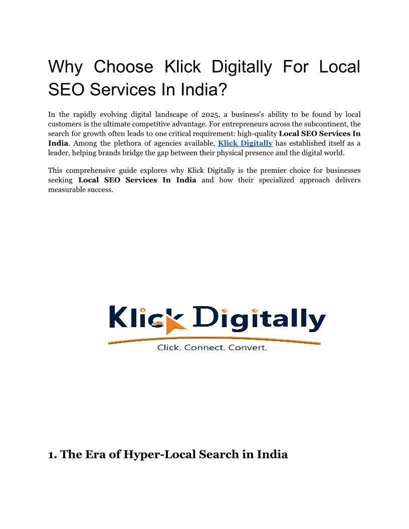 Why Choose Klick Digitally For Local SEO Services In India ?