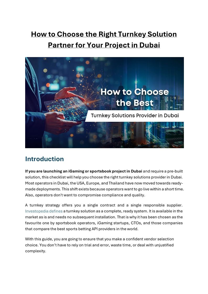 How to Choose the Right Turnkey Solution Partner for Your Project in Dubai